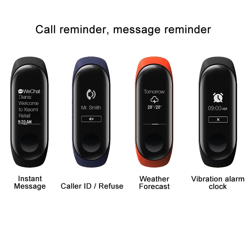 Function:Passometer,Sleep Tracker,Activity Tracker,Fitness Tracker,Push Message,Heart Rate Tracker,Social Media Notifications,Alarm Clock,Message Reminder,Call Reminder