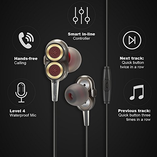Dual Driver Earphones: Dual drivers enhance your music with high-fidelity audio for better sound than ever, achieve the kind of audio clarity mono-driver headphones simply cannot provide.