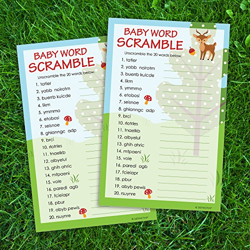 Woodland Animals Baby Shower - Word Scramble Game Cards (20 Count)