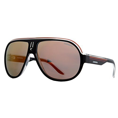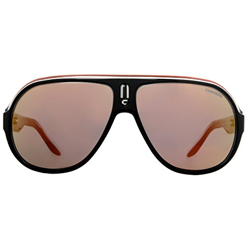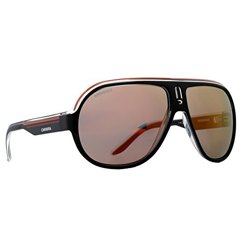 Carrera Sunglasses, style Speedway is an oversize plastic navigator frame with a plastic logo detailing on the bridge. The retro Rx-able Speedway features a saddle nose bridge for extreme comfort. Featured on the temples is the Carrera Sunglasses logo. Carrera Sunglasses have lightweight plastic lenses that always ensure 100% protection from harmful UVA/UVB rays.Feature