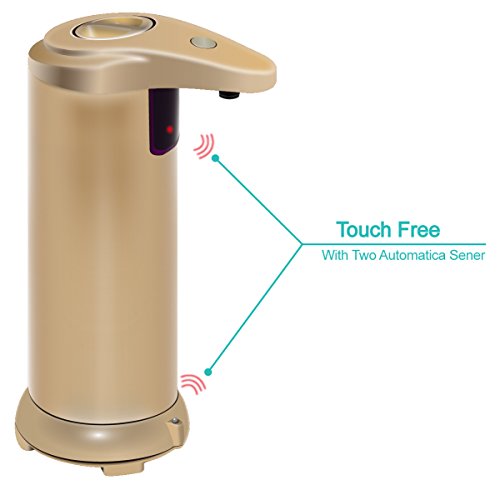Automatic Touchless Soap Dispenser, ANKO Sensor Stainless Steel Soap Dispenser with Waterproof Base, Suitable For Kitchen, Bathroom etc (GOLD-2 PACK)