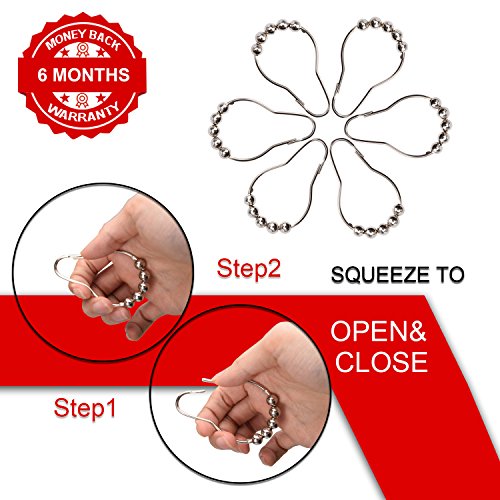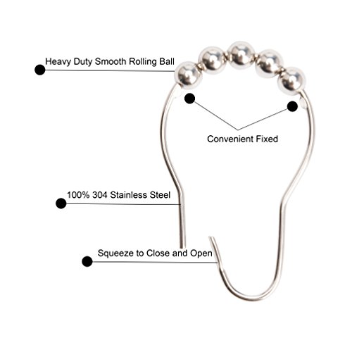FREE GLIDING ACTION – The Roller function allows the hooks to glide easily over your shower rod. Smooth rolling ball bearings eliminate snagging, tugging and pulling of the curtain.