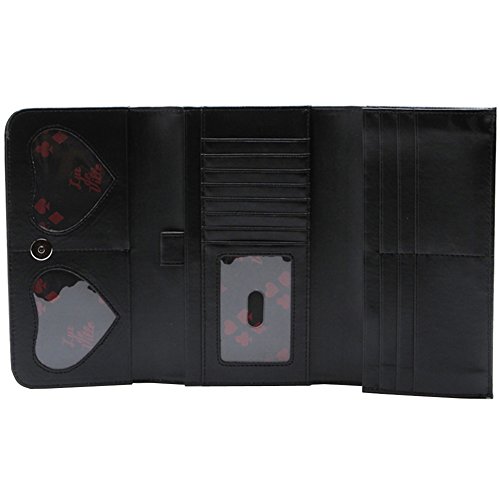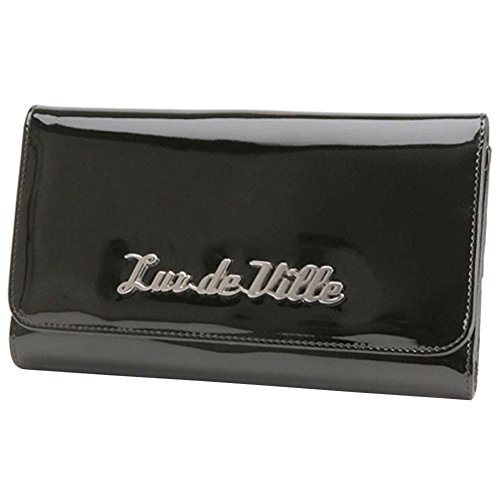 Studio : Lux De Ville Publisher : Lux De Ville Binding : Apparel Product Description Miss Lux Wallet Women's Black Shiny By Lux De Ville. Lux de Ville's new signature wallet that will compliment any of your Lux de Ville handbags. Functional yet fabulous!! Hooray! Inside you will find two heart shaped picture frames, two bill compartments, pen holder, zippered coin pouch and plenty of card and ID holders. Tri fold with magnetic clasp. Measurements 7.5" long, 4.5" tall - closed, 12" tall - open and 1" wide. 0