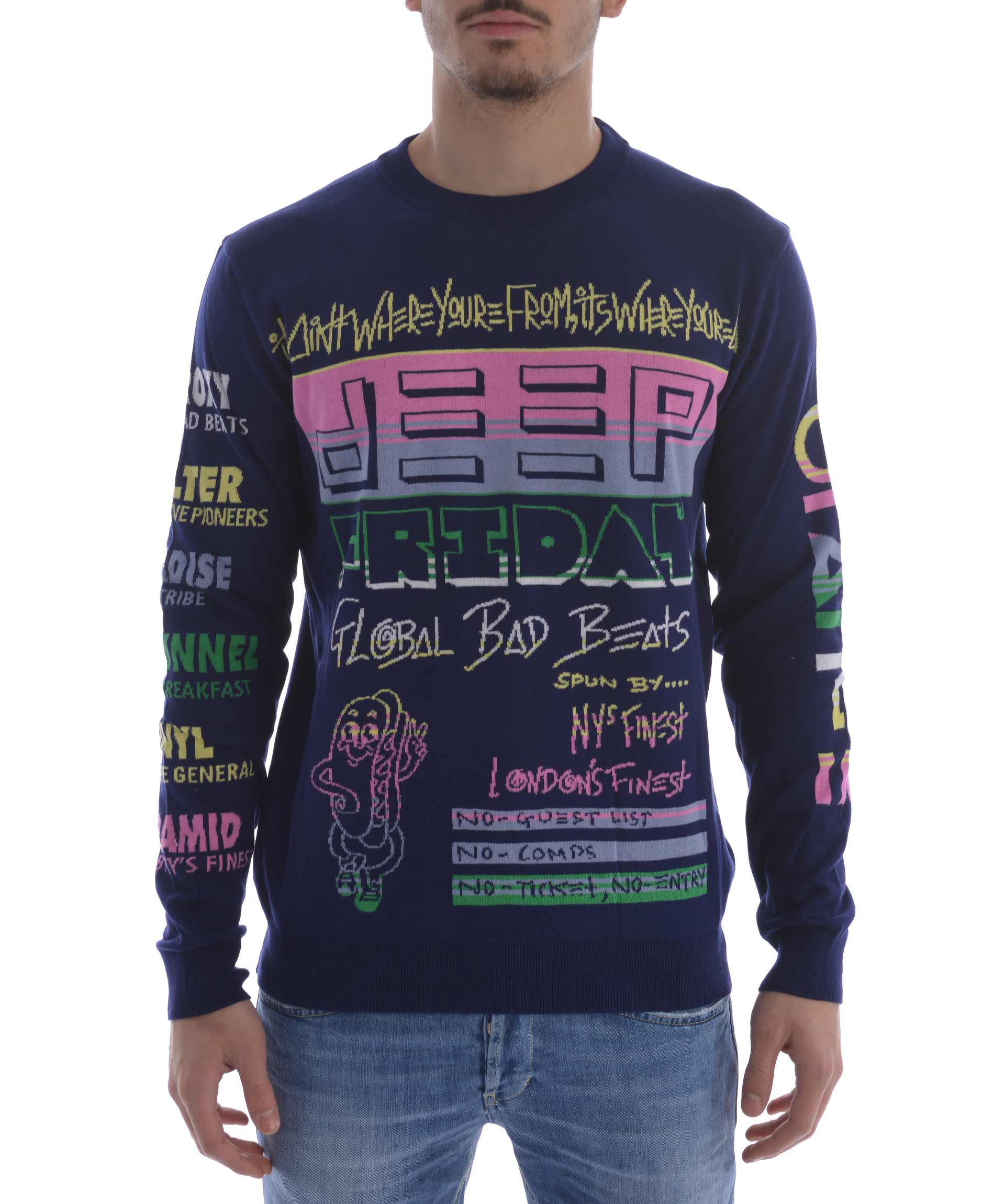 Flyers Sweater from Kenzo: Blue Flyers Sweater with crew neck, all-over print design, long sleeves, a ribbed neckline, cuffs and hem.