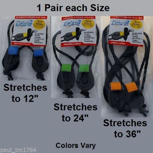 -. Feature : Available in 3 sizes 12" - 24" - 36". Colors at random / They are quick release, adjustable, reusable and they float if dropped in the water. / 4 mm high density foam helps prevent fishing butlers from scratching or denting your fishing rod. / Medium, Great for ratchet straps, skiis, poles, extension cords, hoses, ropes, And a Million more things. / Large, Use for tie downs on ATV's, boats, canoes, kayaks and back packs.and the list goes on.