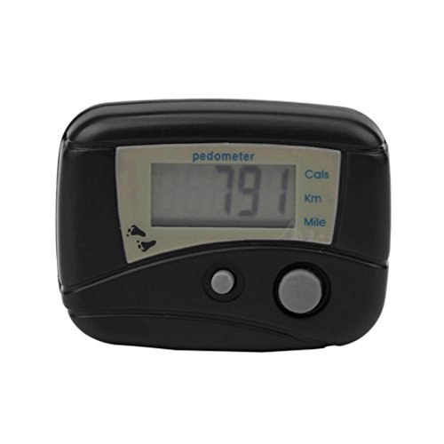 -. Feature : Size: 48 x 35 x 15mm. Built-in Belt Clip. / Power by 1.5v cell button battery. / 3 Counting Mode: Calorie, Kilometer, Mile. Steps count from 0 to 99,999. / This pedometer can effectively help you to track your progress and improve your stamina. / To count accurately, please wear the pedometer vertically, about 14cm or 6 inches left or right from the central line of the waist.