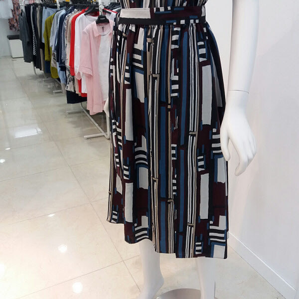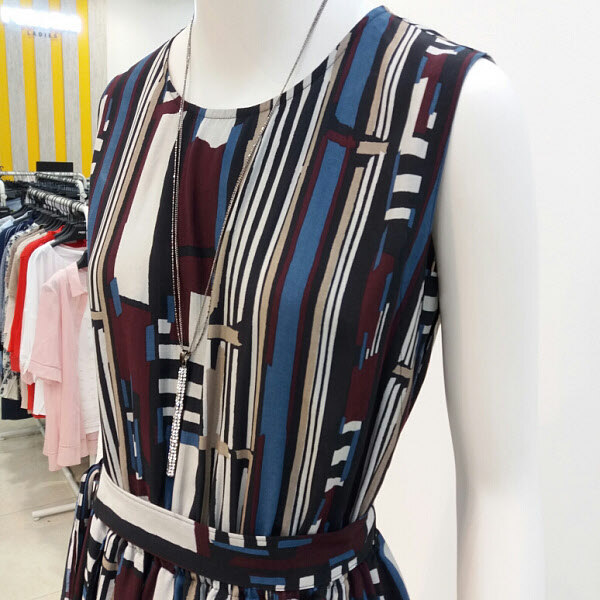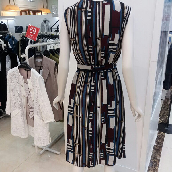고급스런 프린트에 배색이 멋스러운 스타일의 원피스입니다. 허리라인을 잡아 다리가 길어보이는 효과가 있으며 벨트로 포인트를 주었습니다