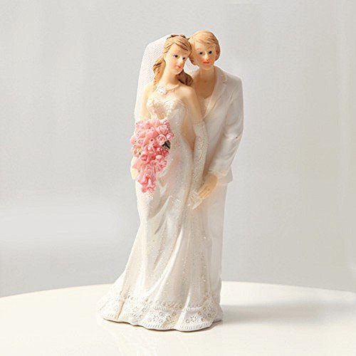 - Polyresin cake topper figurine. Measures 2 1/2in.W x 6in.H.