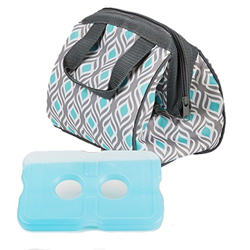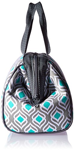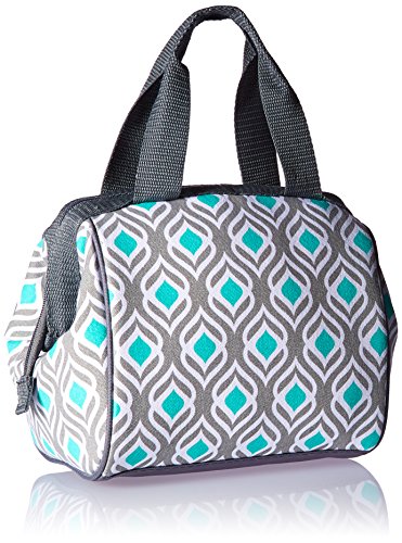 Fit & Fresh Women's Charlotte Insulated Lunch Bag with Zipper Closure and Ice Pack, Ideal Size for Work or School, Aqua Gray Leaf