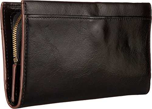 Modern design meets effortless functionality with the Hobo™ Rubia wallet. Made of tumbled leather. Snap closure. Front exterior zip pocket. Lined interior. Interior features a center-zip pocket, ID window, slip pockets, and twelve card slots. Imported. Measurements: Bottom Width: 7 1⁄2 in Depth: 1 in Height: 4 in Weight: 5.6 oz Please note, the hardware color and interior lining may differ from the color shown in the photo.Feature