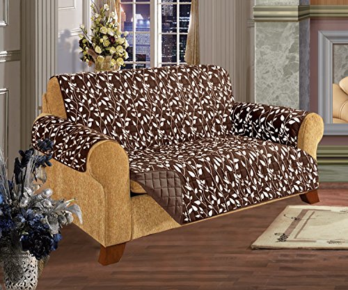 - Title : Quilted Pet Dog Children Kids - FURNITURE PROTECTOR- Microfiber Slip Cover Chocolate Sofa Leaf Design
