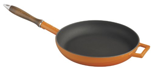 -. Feature : This versatile skillet offers a spacious cooking surface for multiple servings and larger ingredients / A beautifully crafted wooden handle helps provides a steady grip on this pan for both cooking and transporting / Perfect for frying, sauteing, or sticking in the oven and cooking up your family's favorite cornbread recipe / Lava's superior enamel offers the most wide-ranging versatility of use and products for food storage, food preparation and cooking / Strong, durable finish in rich colors complements any kitchen decor Perfect for cooking, serving and entertaining