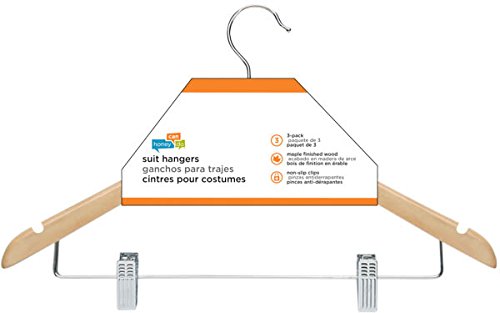 Honey-Can-Do HNG-01209 Basic Suit Hanger with Clips, 3-Pack, Maple