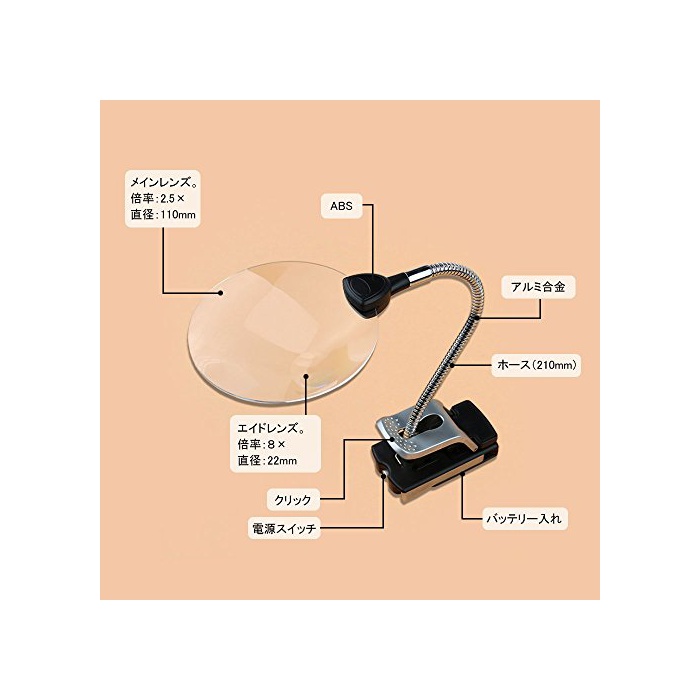 원본상품명: 大鏡 ライト付き 2.5倍と5倍大 眼鏡 ルペ クリップ式 老眼 ネイル