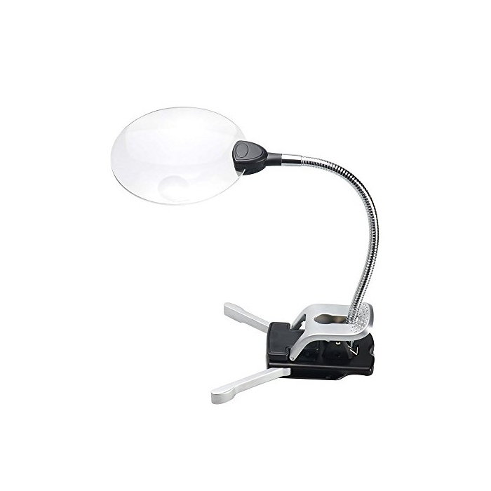 탁상 스탠드와 클립 양용식 자립 할 수 있는 스탠드 타입의 LED라이트 부착 루페입니다.