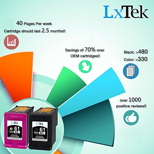 LxTek Remanufactured Ink Cartridge Replacement For HP 61XL HP 61 XL(1 Black | 1 Tri-Color) CH563WN CH564WN High Yield