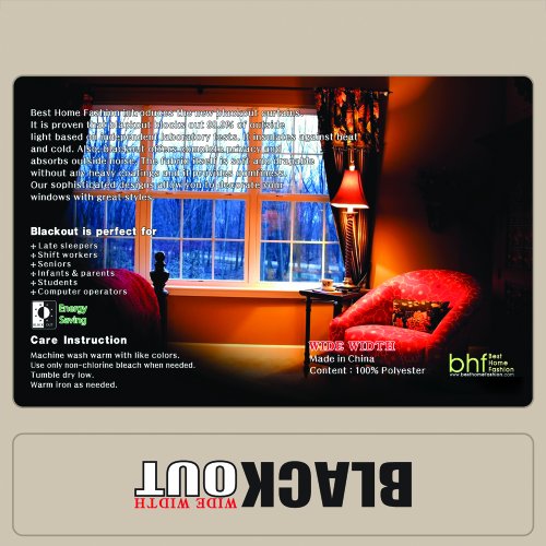 Best Home Fashion is one of the leading sellers of Blackout Curtains on Amazon. Our Wide Width Basic Grommet Thermal Insulated curtains are perfect for patio doors. It features an innovative triple weaved fabric construction allowing for single layer, unlined, thermal, insulated blackout curtains. Blocks out light and noise while cutting back on window related energy loss. The grommet top adds a modern touch and is easily drapable. Contains 1 grommet top curtain panel and 16 antique bronze grommets per panel. Practical and functional, these curtains are machine washable and easy to care for. Blackout curtains are ideal for: Late sleepers, Grave-yard Shift workers, Infants, Parents, Students, Computer operators, etc. Care instruction: Machine wash warm with like colors. -Use only non-chlorine bleach when needed. -Tumble dry low. -Warm iron as needed. *For proper fullness, panels should measure 2-3 times the width of your window. **The digital images we display have the most accurate color possible. However, due to differences in computer monitors, we cannot be responsible for variations in color between the actual product and your screen. ***Darker colors are more effective in blocking out light.Feature