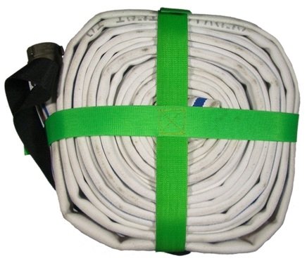 -. Feature : Double Donut Strap / Holds Two 50-foot sections of 13/4" hose / Heavy-duty nylon webbing / High-sheer strength Velcro / Adjustable from 42"-50"