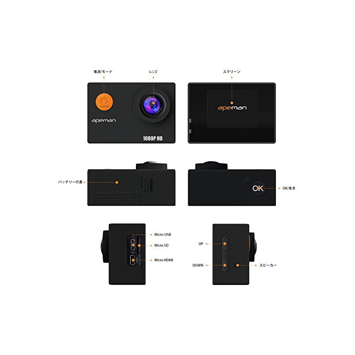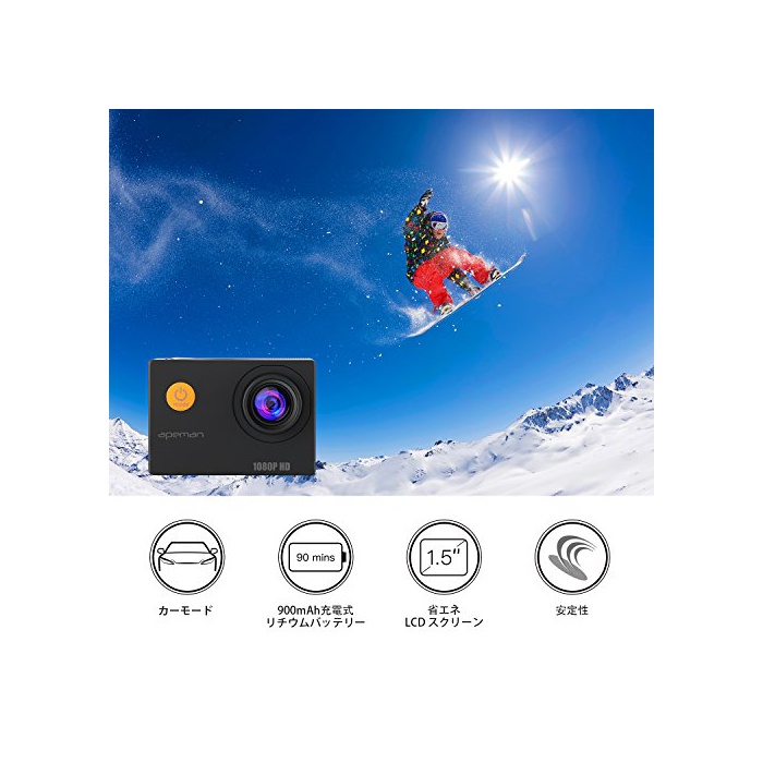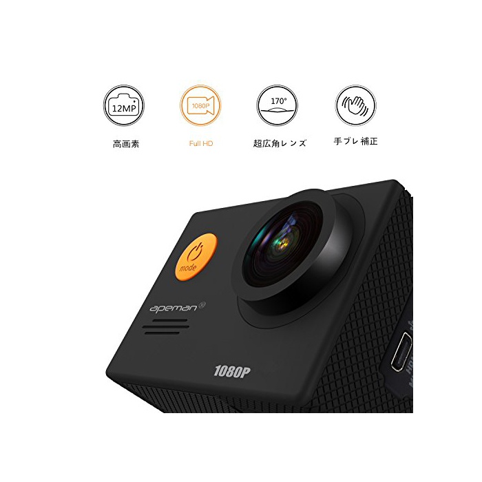 원본상품명: APEMAN アクションカメラ ウェアラブルカメラ 1080P 1200万素 30m防水 スポツカメラ 170角レンズ 手振れ補正 HDMI出力 充電式バッテリ 車/バイク/自車に取り付け可