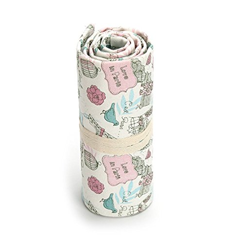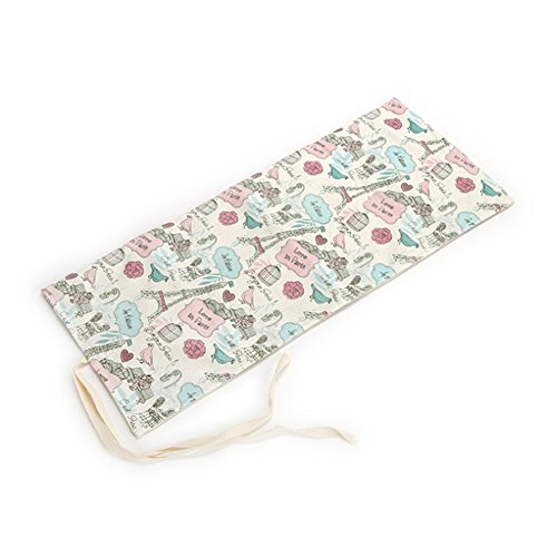 Molshine Canvas Pencil Wrap, Pure Handmade, Travel Drawing Coloring Pencil Roll Organizer for Artists,for Adults, Students and Children, Eiffel tower (Pencils are NOT INCLUDED) (36Holes)
