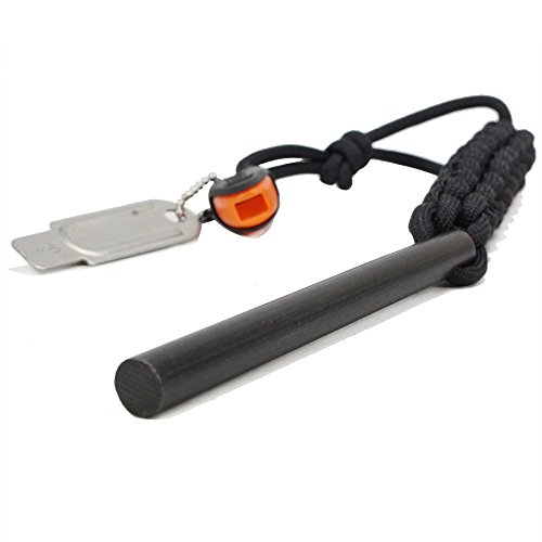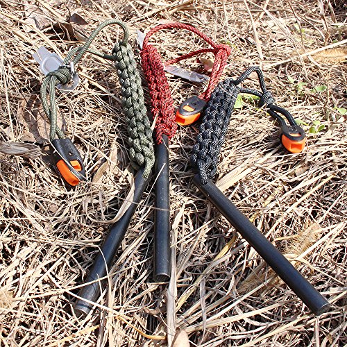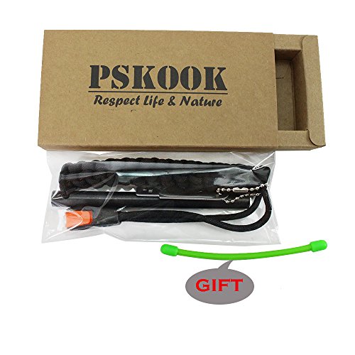 PSKOOK Ferro Rod Flint Fire Starter Survival Paracord Tinder Lanyard Outdoor Ferrocerium Rod Emergency EDC Kits with Whistle