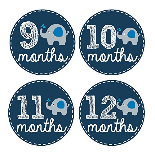 -. Title : Pinkie Penguin Elephant Baby Monthly Stickers - Milestone Onesie Stickers - 1-12 Months - Baby Boy Month Stickers