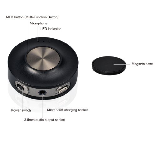 - Feature : Bluetooth stereo hands free car kit allows you make hands free calls and stream audio from a Smartphone to car speakers. / Superior audio performance using apt-X hi-fi quality stereo. / Bidirectional noise reduction for clearer conversation. / Multipoint support connect two devices simultaneously. / Embedded magnetic base can be placed anywhere on the dashboard for the best voice pick-up.