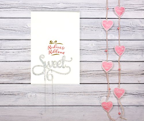 Product Description Add a festive touch to your teen's birthday cake with Rubies Ribbons' beautiful "Sweet 16" cake topper! Featuring the text "Sweet 16" in sturdy gold or silver metal covered with rhinestones, it will make a great keepsake and memento after the party! Comes in a beautiful Rubies Ribbons gift box. 0