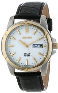 세이코SNE104맨즈화이트다이얼 레더 스트랩 솔라 시계.