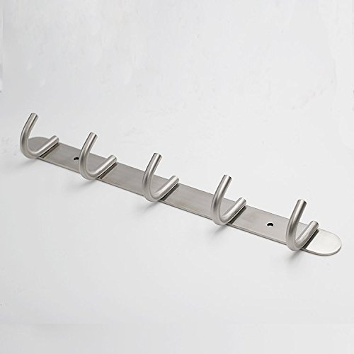 Coat Hook Rack with 5 Round Hooks - Premium Modern Wall Mounted - Ultra durable with solid steel construction, Brushed stainless steel finish, Super easy installation, Rust and water proof