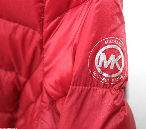 Product Description Michael Kors packable down jacket. Red w/ gray lining. Detachable hood. Smocked elastic insert at back waist. Silver hardware. Silver screen logo on left sleeve. 0
