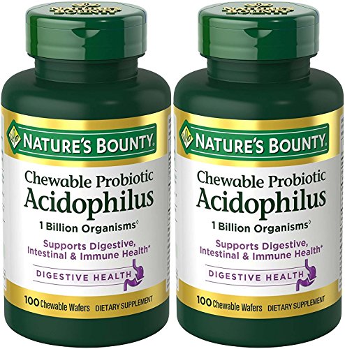 Nature's Bounty Acidophilus with Lactis Chewable Milk Free Wafers, Natural Strawberry Flavor, 100 Count (Pack of 2)
