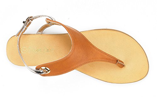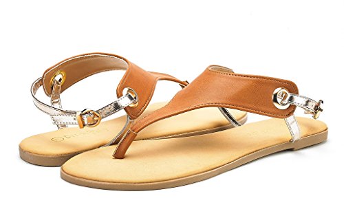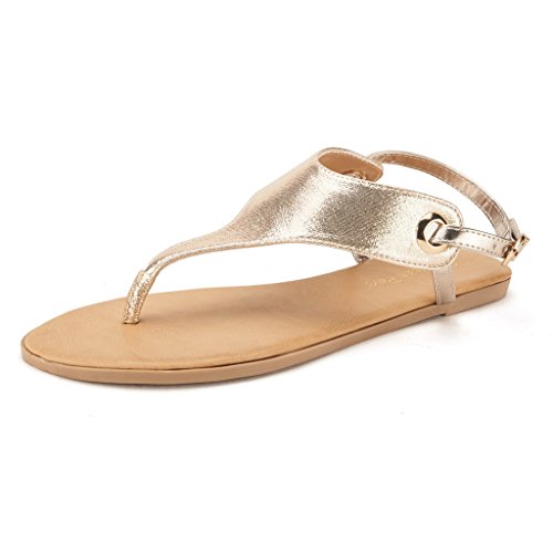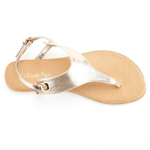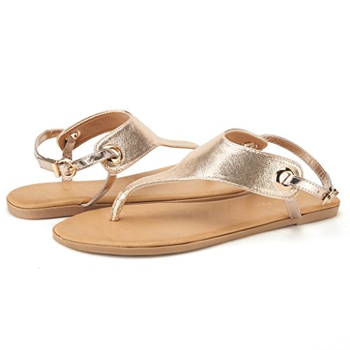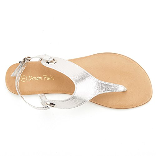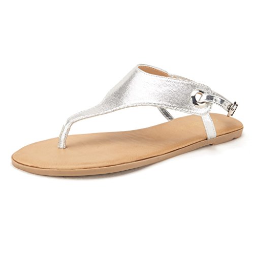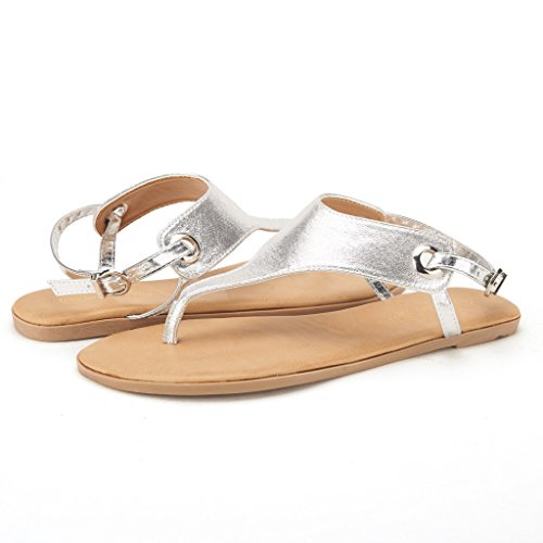 Product Description Add a classic vibe to your wordrobe with this gorgeous flat sandal! Featuring thong strap construction with , lightly padded insole, and adjustable ankle strap with buckle closure. Silver and Gold are using glitter pearl suede upper, which would be a perfect match for your dress. 0