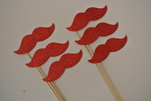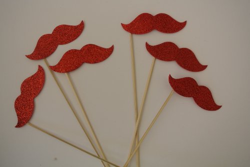 6 Pc Mustache on a Stick Photo Booth Props Medium Red Mustaches070500