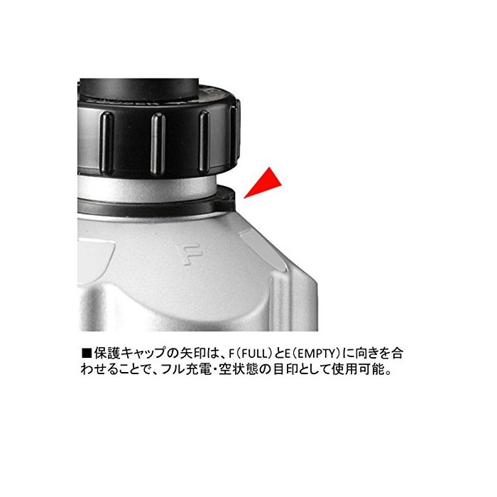 보호 캡의 화살표는,F(FULL)와 E(EMPTY)에 적합을 맞추는 것에,풀 충전공 상태의 표적으로서 사용 가능.