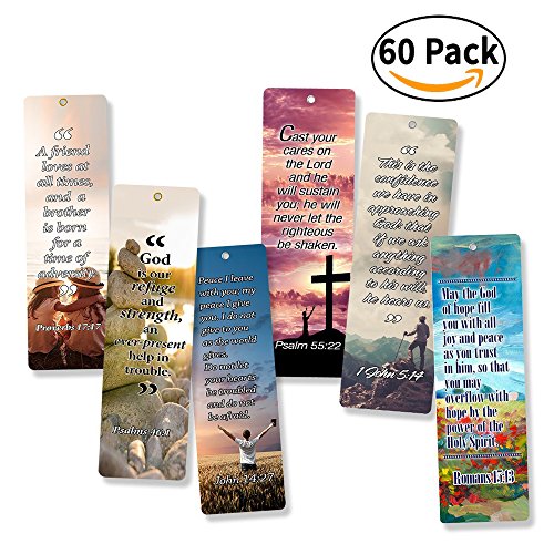 Father Day Gifts - 6 Unique Designs of Inspirational Chistian Quotes from Bible ( 6 X 10 pcs each - Pack of 60). Share the good news of the Bible with friends, coworkers and family - Great way to encourage for yourself or others and very useful for bible verse memorization, bookmark, gift, Sunday School, Vacation Bible School, VBS, Bible classes or group study, prison ministries