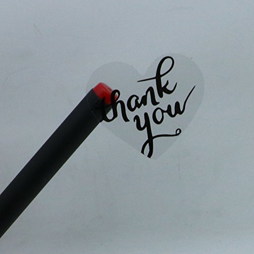 Hybsk 1.5" Love Heart Shape Clear Wafer Thank You Stickers with Black Ink Adhesive Label 500 Per Roll