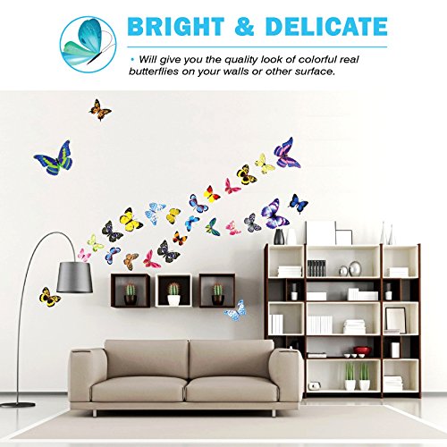 BRIGHT COLORS & DELICATE DESIGN: Will Give You The Quality Look of Colorful Real Butterflies on Your Walls or Other Surface.