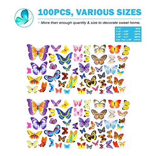 100PCS, VARIOUS SIZES: These Butterfly Wall Art Are More than Enough Quantity & Size to Decorate Your Room & Other Space.
