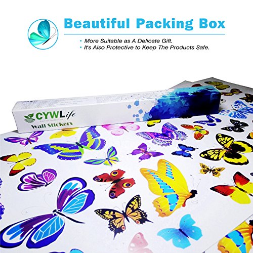 Butterfly Wall Stickers Decals Art 100PCS Colorful, Butterflies Wallpaper Home Decor for Kids Girls Living room Bedroom Kitchen Bathroom, Vinyl Wall Decoration, New Design with Packing Box by CYWLife