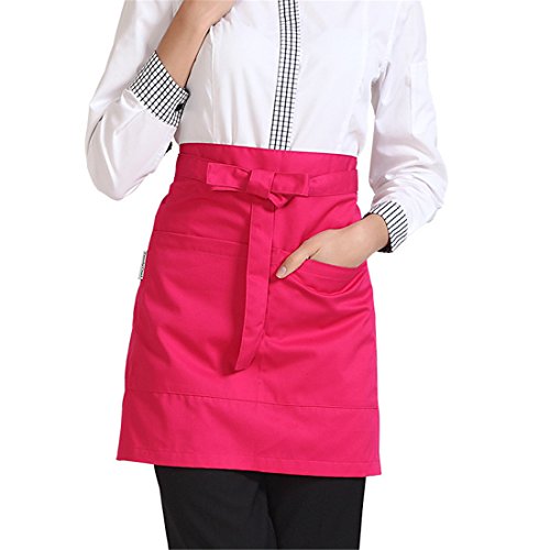Simplicity pink cotton adjustable half waist cooking apron with two pockets for men and women girls waiter waitress kitchen restaurant