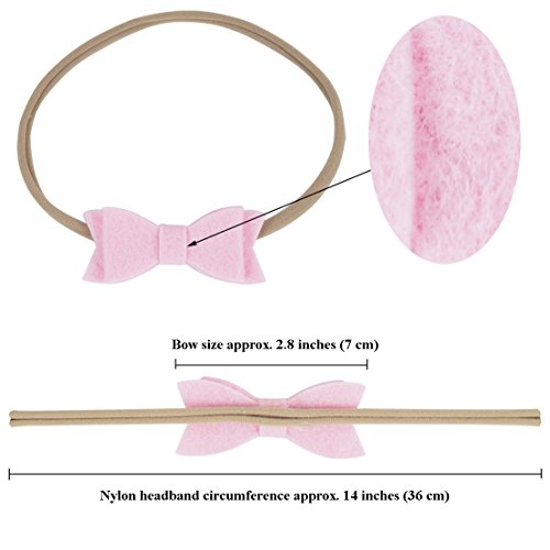 INSTOCK SIZE FIT FOR 14~16INCH(36~41CM). NEED BIGGER SIZE, PLEASE MESSAGE FOR CUSTOMIZE. CPSIA standard materials! Nature enjoyment! Soft headband! Beautiful design! Vibrant colors! No formaldehyde. No heavy metals. No aromatic amines. No pilling. Natural dye for printing and dyeing. Anti sensitive, absorbent and breathable. The baby girls headbands are extremely adorable, trendy, stretchy and comfortable, cozy fit for newborn infant toddler babies girls. Fashion design, great for any occasions, perfect for dressing up to make a nifty outfit or just a little stylish accessory, makes baby looks pretty nice and lovely. Package includes different colors as show in picture. We are devote to offer popular, simple, useful, high quantity hair accessories for you. It is always important for us to hear how Buyers react to all aspects. Please feel free to contact us if you have any questions. Each suggestion will be read and taken into consideration by our service team. We do value the feedback of you and make every attempt to integrate your comments or suggestions into our store and products. It is because of Buyers like you that we strive to be the very best. I would like to extend our thanks to you for your loyalty and support. We really expect every Buyers 100% satisfied with our products or get YOUR MONEY BACK. Enjoy the shopping time! PLEASE NOTE: 1.Do not bleach. Hand Wash Only. 2.The color of baby headbands may have slight difference from the listing picture because of different Camera lens and light environment. 3.There may be slight variations in size and shape in each bows due to the handmade nature of these boutique baby girls hair bow band headbands. 0 |