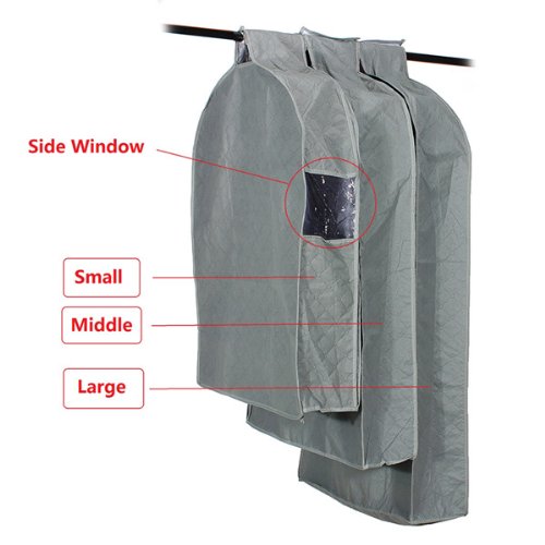 -. Binding : Kitchen -. Brand : Meco -. Feature : Machine-knitted neatly, added bamboo charcoal helps eliminate undelightful smells / Hanger-shaped top, your garment will fit in perfectly / The plastic window helps you see through and find exactly what you're looking for / If gets dirty, please wipe off the dust with a dry soft towel gently. / Sizes: Small / Medium / Large -. Label : MECO -. Manufacturer : MECO -. ProductGroup : Home -. ProductTypeName : HOME -. Publisher : MECO -. Studio : MECO -. Title : Coat Clothes Jacket Suit Bag Dress Garment Storage Travel Dustproof Cover S M L
