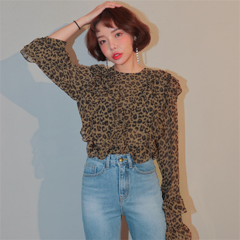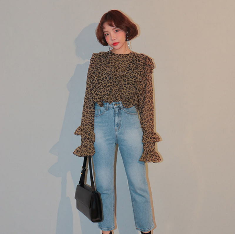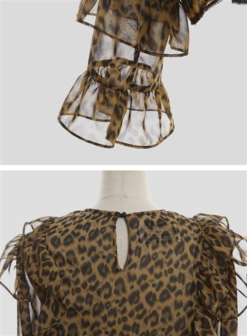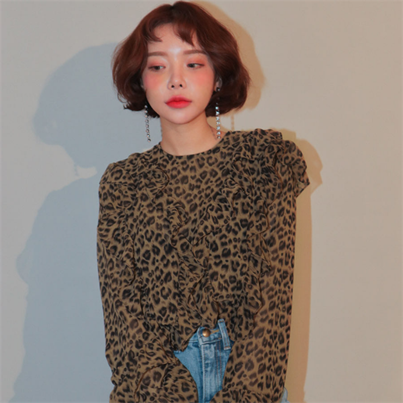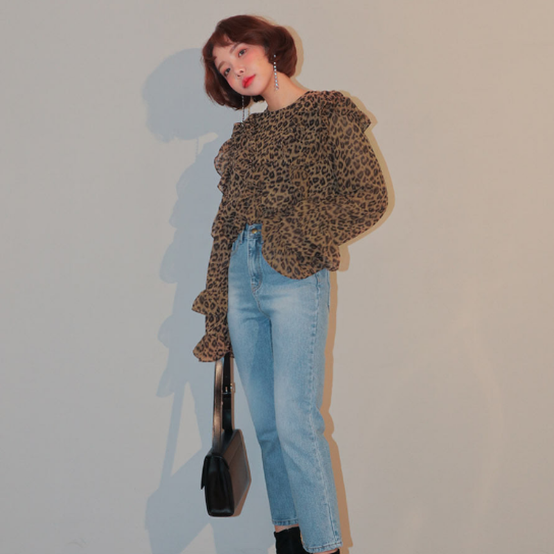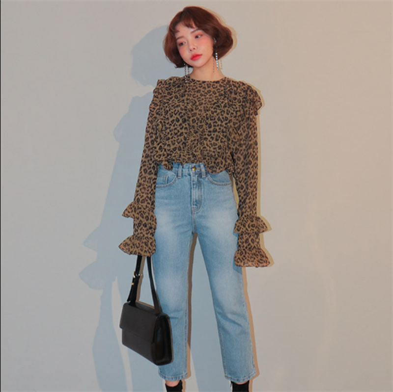 ♢ポイント♢ ヒョウ柄のお洒落な袖コンシャスな長袖ブラウスです。 パンツやスカートにインしても可愛いアイテムです♪
