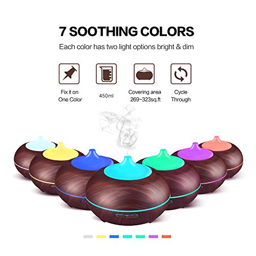Seven Light Modes: Light brightness and colors can be adjusted to meet any of your needs including being used as a night light. The diffuser can also mist with the light off.