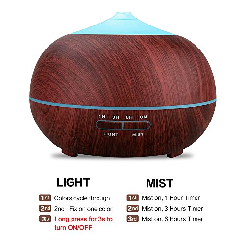 Large Capacity: With 450ml water capacity, the diffuser has a wide misting coverage and can work up to 7 hours in high mist mode and 8 hours in low mist mode continuously.