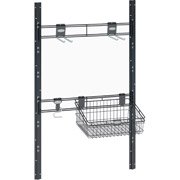 -. Feature : Includes: Two 4 in. double hooks (limit 25 lbs.), One S-hook (limit 35 lbs.) One 8 in. x 12 in. basket (limit 25 lbs.) / Sturdy resin construction / Manufactured in United States / Includes three hangers and vertical brackets / For use with Sierra and Everet Buildings, BMS6800, BMS6810, BMS6550, BMS6510, BMS6300, BMS6310