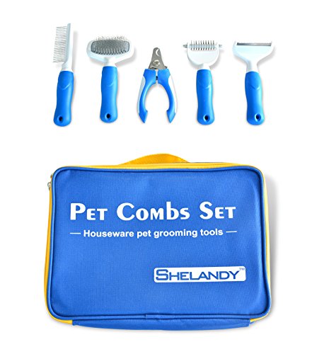 -. Title : SHELANDY Portable pet grooming tools kit for dogs and cats - 5 pieces set and Non-stick hair bag