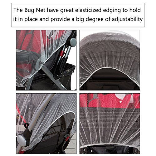 2 Pack Mosquito Net By JINSEY Bug Insect Net for Baby Strollers Bassinets Infant Carriers Car Seats Cover Cradles (White Blue)