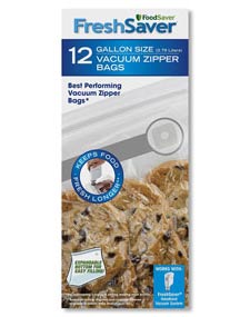 12-count gallon-size vacuum zipper bags for use with a FreshSaver handheld vacuum sealing system (sold separately). view larger